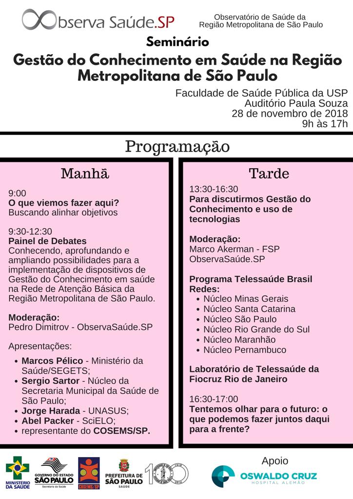 Discutir e aprofundar o tema da gestão do conhecimento em saúde e analisar a viabilidade de impulsionar suas tecnologias para os municípios da Região Metropolitana de São Paulo, com ênfase no suporte para as equipes de Atenção Básica.