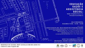 Com uma proposta inovadora, a nova disciplina interunidades “PRG 0021 Educação, saúde e assistência social: Redes complementares na proteção social básica” oferecerá sua aula inaugural no dia 16 de agosto, às 19h, e convida a todos para participar por meio do link https://meet.google.com/abi-zzqb-syu