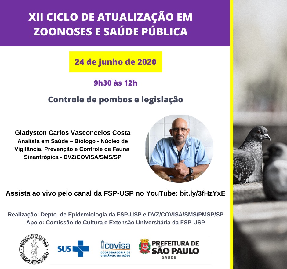 As intervenções possíveis no controle de pombos é o tema da palestra “Legislação e controle de pombos”